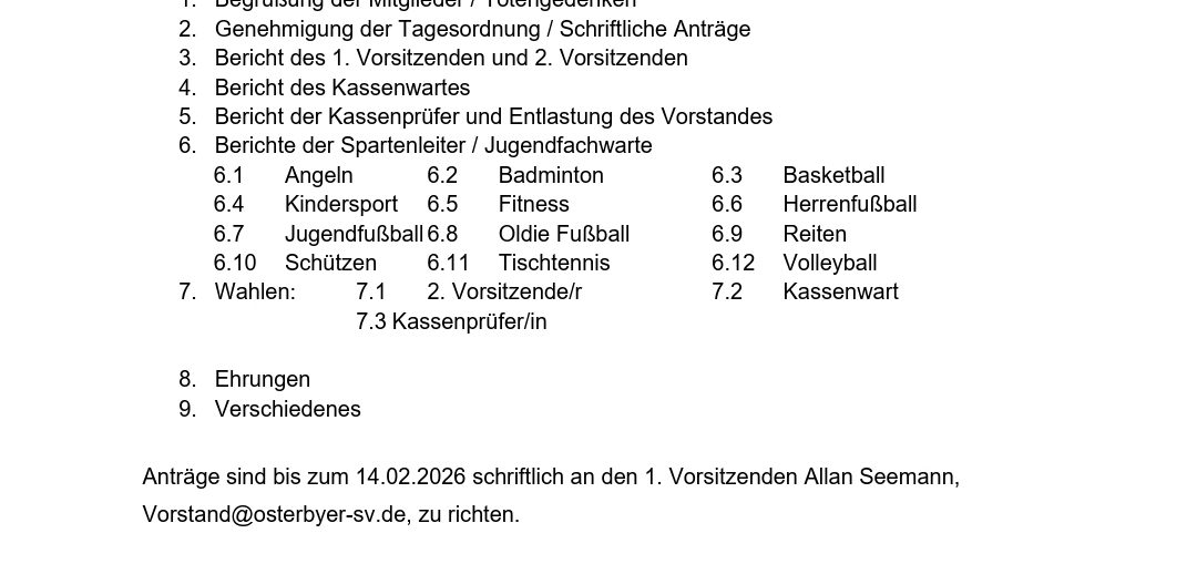 Hilfe beim Kinderfitness gesucht Aktuelles 16. Juli 202516. Juli 2025 Moin zusammen,ich leite beim Osterbyer SV die Kinderfitness für Kinder von 5 bis 11 Jahren – mit viel Bewegung, Spielen und Spaß. Die Gruppe ist sehr beliebt und regelmäßig gut besucht. Leider hört Maxie nach den Sommerferien auf, deshalb suche ich dringend Unterstützung! 👉 Die Stunde findet freitags von 15:15 bis