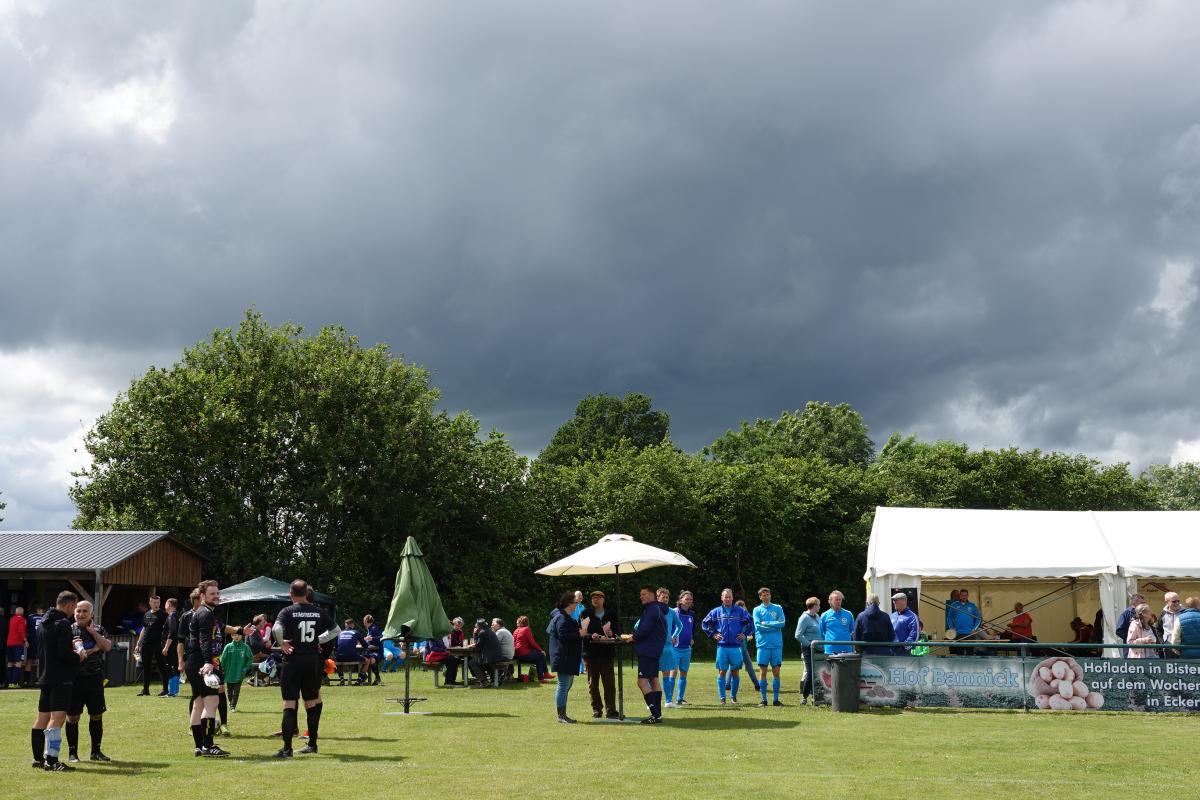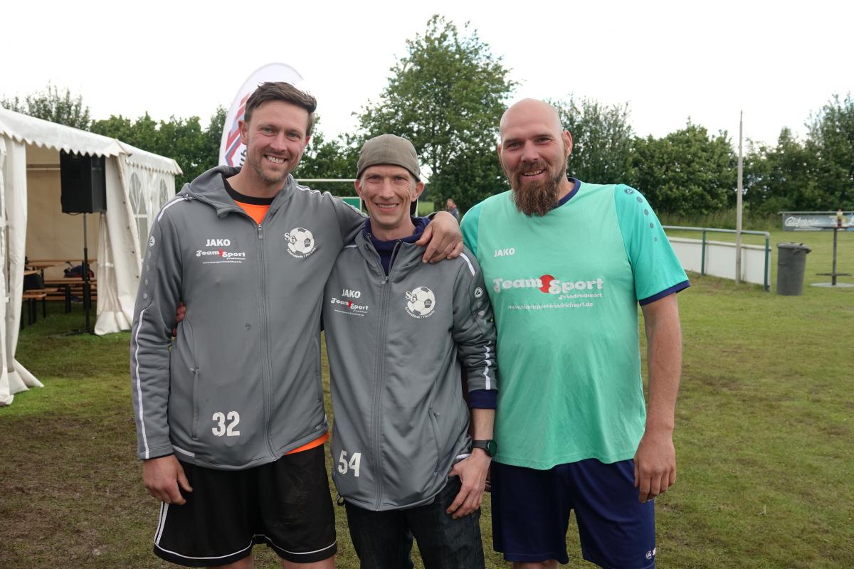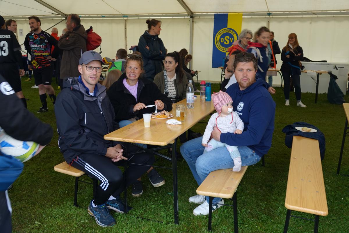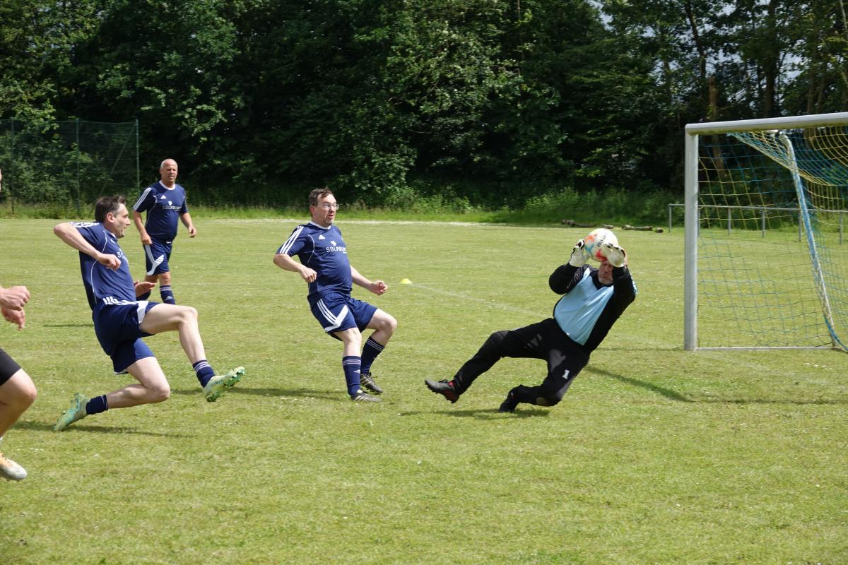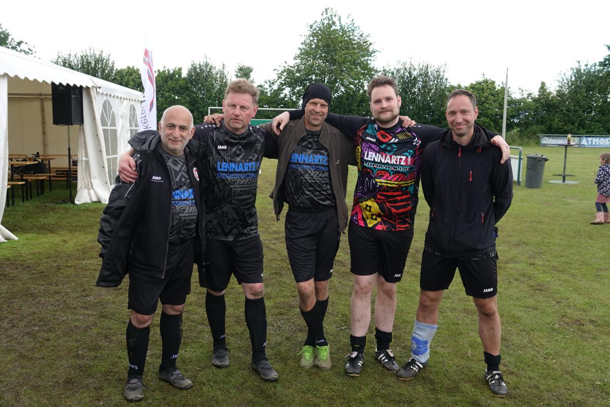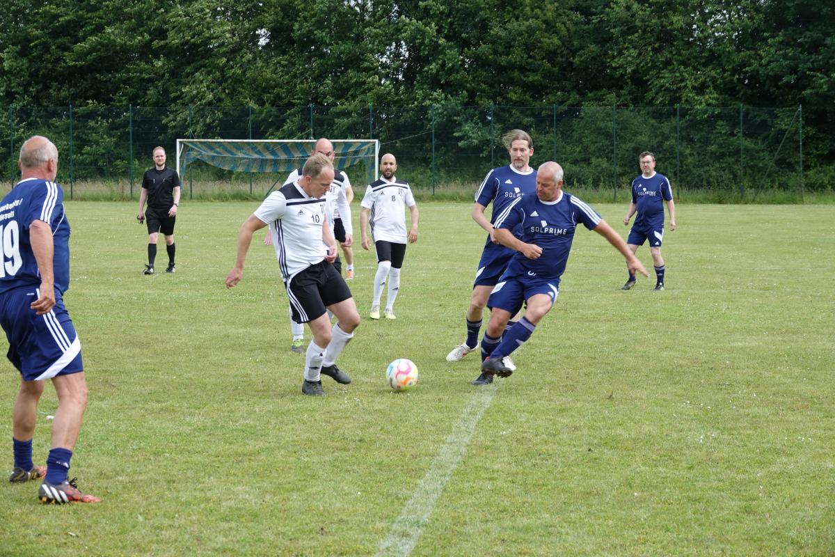 Das war das Jürgen-Retza-Turnier 2024 Aktuelles 30. Juni 202422. August 2024 Beste Unterhaltung und leckeres Spanferkel beim Jürgen-Retza-Turnier (JRT) In diesem Jahr behielt die Wettervorhersage leider in Teilen recht. Am Samstag, den 15.06.24, ergossen sich gegen 11 Uhr derart heftige Regenfälle, dass die Spiele der Jüngsten (G-Jugend/ bis 6 Jahre) bedauerlicherweise abgebrochen werden mussten. „Wir haben uns die Entscheidung nicht leicht gemacht und bei all den Vorbereitungen ist es sehr, sehr bedauerlich, aber letztlich waren sich alle einig. Der Regen war zu heftig.“ Alle sind nass bis auf die Knochen. Zum Wohle aller müssen wir abbrechen,“ untermauerte Lasse Retza die Entscheidung. Lasse Retza, zusammen mit Thorsten „Thermo“ Geyer Trainer der jüngsten Mannschaft, hatte es in Abstimmung mit der Staffelleitung des Kreisfussballverbandes geschafft, einen kompletten Spieltag der G-Jugend-Staffel in Osterby ansetzen zu lassen. Es waren 15 Jugendmannschaften vor Ort. Es waren 7 Spielfelder für die jüngsten Kicker aufgebaut, die mit jeweils 3 Spielern auf 2 Tore gegeneinander spielen. Alles war für einen tollen Auftakt zum JRT mühevoll und bestmöglich vorbereitet. Nach einer kurzen Begrüssung durch Lasse Retza starteten die Spiele wie geplant ab 10 Uhr. Die Freude und Begeisterung der jüngsten Kicker wurde dann jedoch jäh abgewürgt. Die immer heftiger werden Regenfälle wie oben angeführt ließen nur noch eine Abbruch zu. Zurück blieben entäuschte Spieler*in mit Eltern und Anhang, die sich nach kurzer Trocknung auf die Heimreise begaben, sowie zahlreiche Helfer, die für das leibliche Wohl und das organisatorische Gelingen des Spieltages sorgen wollten. Nach einer somit etwas längeren Pause begrüsste gegen 13.15 Uhr Thomas Wohlert als Ehrenpräsident unseres Osterbyer SV die Besucher und teilnehmenden Mannschaften des Alt-Herren-Anteils des JRT. Trotz kurzfristiger Absagen waren mit der Nord-Ostsee-Auswahl (NOA), dem Eckernförder SV, dem SV Fleckeby, dem Barkelsbyer SV, den Hölcki´s Allstars aus Hamburg sowie einem Team des Städtischen Krankenhauses Kiel 6 Mannschaften unserer Einladung gefolgt. Natöörlich stellten auch wir als Gastgeber eine eigene Mannschaft. Thomas resümierte kurz den Erfolg der bisherigen Turniere, erläuterte Anlass und Ziel der Veranstaltung und wünschte allen Beteiligten viel Spaß und einen fairen und respektvollen Umgang miteinander. In der Folge erklärte unser umtriebiger und sehr geschätzter Oldie-Obmann Helmut Schlaber den geplanten Spielplan und Spielmodus und verwies auf die erste Partie. Diese wurde pünktlich um 13.30 Uhr angepfiffen und endete 3:1 siegreich für den Eckernförder SV gegen SV Fleckeby. Bei 7 Mannschaften sollte jeder gegen jeden spielen. Zur Freude der Zuschauer gab es auch immer wieder technische Kabinettstückchen und herrliche Spielzüge mit erfolgreichem Torabschluss zu sehen. Nach 47 Toren in 21 Spielen wurden dann die Platzierungen ermittelt. Mit 18 Punkten und 11:1 Toren behielt lediglich die NOA eine weiße Weste. Die NOA gewann all ihre Spiele und wurde verdientermaßen erneut zum Sieger des Turnieres. Vor der Siegerehrung wurden die Gewinner der abwechselungsreichen Tombola bekanntgegeben und konnten sich ihre Preise aussuchen. Die Tombola sowie das ganze Geschehen am Nachmittag moderierte unterhaltsam und informativ in sehr sympathischer Art Maike Jäger sehr erfolgreich. Maike taufte schnellentschlossen das Spendeschwein auf den Namen „Henriette“ und ließ nicht locker, die Besucher zum Füttern von Henriette zu animieren. Und das gelang Maike sehr erfolgreich. Allein Henriette hat mit über 270,-Euro für den guten Zweck beigetragen. Ebenso haben die animierenden Ansagen von Maike kräftig zum Kauf der Tombolalose beigetragen. Sensationelle 430,-Euro sind durch die Tombola für den guten Zweck zusammengekommen. Ein toller Erfolg dank der Unterstützung von Maike. Auch in diesem Jahr ließ es sich Jutta Retza nicht nehmen, das Turnier zu begleiten. Mit weiteren Familieangehörigen genoss sie den spannenden Fussball, die Treffen mit vielen Bekannten und die guten Gespräche. Ebenso übergab sie erneut den Siegerpokal an die NOA. Nach dem Abschuss des Turniers verweilten die einen noch gerne bei perlenden Getränken und guten Gesprächen und die anderen – wegen der langen Fahrt – verließen uns etwas frühzeitiger. Allen gleich war das gute Gefühl hier bei uns in Osterby in bester Stimmung zu der Spende für den guten Zweck beigetragen zu haben und allesamt freuen sich auf die Einladung im nächsten Jahr. Der gesamte Spendenbetrag für die Mukoviszidose e.V. Schleswig-Holstein stand zum Redaktionsschluss noch nicht fest und wird nachberichtet. Sehr wohl kann ich aber bereits die stolze Summe von 3.025,- Euro als Spendesumme auf dem MuKo-Konto präsentieren. Diese Spendensumme wurde unter dem Stichwort „OSV-JRT24“ bis Stand 21.06.24 gespendet. Mein ganz großes DAAANKE geht an alle Helfer*innen und Unterstützer*innen, die durch ihren Einsatz den Erfolg des JRT erst möglich machen. Das ganz besondere DAAANKE ist für Basti Steinig für das sehr leckere Spanferkel, dass du uns bereitetest hast und die vielen Stunden, die du dafür in der Vor- und Nachbereitung investierst hast. Alles für den guten Zweck zu Gunsten der Mukoviszidose e.V. Schleswig-Holstein. Andreas Kern DSC01286 (1) DSC01258 DSC01288 DSC01260 DSC01293 DSC01261 DSC01296 DSC01262 DSC01263 DSC01297 DSC01300 DSC01265 DSC01302 DSC01267 DSC01303 DSC01268 DSC01305 DSC01269 (1) JRT 20240001-00 DSC01274 « ‹ von 2 › »