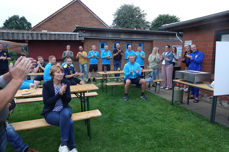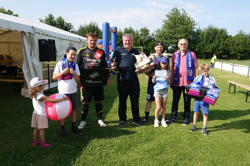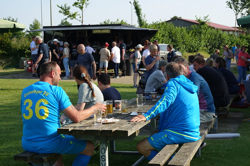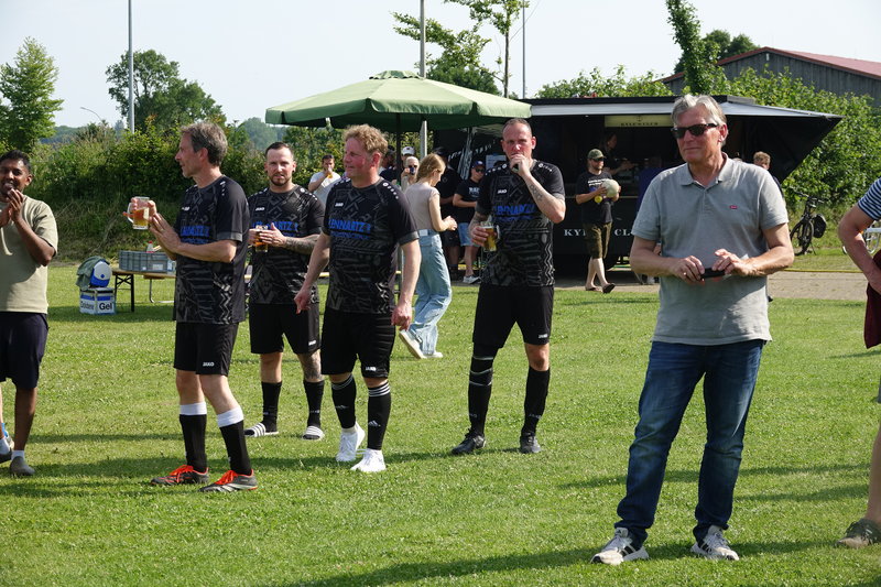 Erfolgreiches Jürgen-Retza-Turnier 2025 Aktuelles 20. August 202520. August 2025 Fröhlich, sportlich, gemeinsam – das Jürgen-Retza-Turnier (JRT2025) Am Samstag, den 14.06.25 startete der Turniertag ab 10 Uhr bei bestem Sommerwetter mit unserem jüngsten Fußballnachwuchs. Nach einer kurzen gemeinsamen Begrüßung durch den Trainer unserer 2 OSV-Mannschaften – Lasse Retza – spielten 8 G-Jugend-Teams voller Spielfreude und Begeisterung auf. In sechs Spielrunden gegeneinander galt es möglichst erfolgreich diesen offizellen Spieltag des Kreisfußballverbandes (KFV) für sich zu entscheiden. Mit jeweils 2 Mannschaften waren der TSV Neudorf-Bornstein, der Gettorfer SC und der Eckernförder SV mit ihrem jüngsten Kickern angetreten. Lasse Retza hatte es auch in diesem Jahr erneut geschafft, in Absprache mit der Staffelleitung des KFV einen kompletten Spieltag nach Osterby zu verlegen. Zudem hatte Lasse mit seinem Co-Trainer – Dennis Baier – gemeinsam sämtliche Vorbereitungen für den Anteil Jugendfußball bestens organisiert und vorbereitet. Nach insgesamt 24 gespielten Partien folgte die gemeinsame Siegerehrung/ Verabschiedung. Es war eine Freude zu sehen, wie sehr sich alle Spieler*innen bei den mittlerweile sehr warmen Temperaturen über ein kühles Eis freuten, welches von Lasse und Dennis on top überreicht wurde. Großen Dank an Lasse und Dennis für den gelungenen Auftakt der Spiele und an alle übrigen Helfer*innen, die im Vormittag so tatkräftig zum Erfolg des Jugendfußballturnieres beigetragen haben. Nach einer entsprechenden Pause und erforderlichen „Umbaumaßnahmen“ konnte anschließend der Alt-Herren-Anteil des Jürgen-Retza-Turnieres beginnen. Gegen 13.10 Uhr begrüsste Allan Seemann als 1.Vorsitzender unseres OSV die Besucher und teilnehmenden Mannschaften auf das Herzlichste in unserem schönen Osterby und hieß alle willkommen. 6 Mannschaften waren mit der Nord-Ostsee-Auswahl (NOA), dem Eckernförder SV, der SG Eckernförde/ Fleckeby, den Hölcki´s Allstars aus Hamburg sowie dem Team des Städtischen Krankenhauses Kiel unserer Einladung gefolgt. Und natöörlich stellten auch wir als Gastgeber eine eigene Mannschaft. Allan resümierte kurz den Erfolg der bisherigen Turniere, erläuterte Anlass und Ziel der Veranstaltung und wünschte allen Beteiligten viel Spaß und einen fairen und respektvollen Umgang miteinander. In der Folge erklärte unser umtriebiger und sehr geschätzter Oldie-Obmann Helmut Schlaber den geplanten Spielplan und Spielmodus und verwies auf die erste Partie. Diese wurde pünktlich zu 13.30 Uhr angepfiffen und endete 3:0 siegreich für die Hölcki´s Allstars gegen den SV Sehestedt. Bei 7 Mannschaften sollte wie in 2024 jeder gegen jeden spielen. Zur Freude der Zuschauer gab es auch immer wieder technische Kabinettstückchen und herrliche Spielzüge mit erfolgreichem Torabschluss zu sehen. Nach 43 Toren in 21 Spielen wurden dann die Platzierungen ermittelt. Mit 16 Punkten und 16:1 Toren behauptete sich erneut die NOA und verteidigte erfolgreich den Siegerpokal. Vor der Siegerehrung wurden die Gewinner der abwechselungsreichen Tombola und des durchgeführten Torwandschießens bekanntgegeben und bejubelt. Die Gewinner konnten sich ihre Preise entsprechend aussuchen. Das ganze Geschehen am Nachmittag moderierte herrlich unterhaltsam und informativ unser Björn „Bude“ Breitkopf. Allein durch den Verkauf der Tombolalose können wir 375,-Euro für den guten Zweck spenden!!! Auch in diesem Jahr ließ es sich Jutta Retza nicht nehmen, das Turnier zu begleiten. Mit weiteren Familieangehörigen genoss sie den spannenden Fussball, die Treffen mit vielen Bekannten und die guten Gespräche. Ebenso übergab sie erneut den Siegerpokal an die NOA. Nach dem Abschluss des Turniers verweilten die einen noch gerne bei perlenden Getränken und guten Gesprächen und die anderen – wegen der langen Fahrt – verließen uns etwas frühzeitiger. Allen gleich war das gute Gefühl hier bei uns in Osterby in bester Stimmung zu der Spende für den guten Zweck beigetragen zu haben und allesamt freuen sich auf die Einladung im nächsten Jahr. Dann findet das Turnier im 20.Jahr statt!!! Der gesamte Spendenbetrag für die Mukoviszidose e.V. Schleswig-Holstein stand zum Redaktionsschluss noch nicht fest und wird nachberichtet. Sehr wohl kann ich aber bereits die stolze Summe von 3.185,- Euro als Spendesumme auf dem MuKo-Konto präsentieren. Diese Spendensumme wurde unter dem Stichwort „OSV-JRT25“ bis Stand 24.06.25 gespendet. Beim Spendenkonto hoffen wir zusätzlich auf zahlreiche weitere Spenden aus der Eckernförder Geschäftswelt, denn unser OSV-Ehrenpräsident – Thomas Wohlert – hat mit großem Engagement in einer persönlichen Briefaktion über 180 Firmen und Betriebe in und um Eckernförde angeschrieben und versucht zu einer Spende für den guten Zweck zu animieren. Großen Dank an Thomas für diesen besonderen Einsatz. Mein ganz großes DAAANKE gilt allen Helfer*innen und Unterstützer*innen, die durch ihren Einsatz den Erfolg des JRT erst möglich machen. Das ganz besondere DAAANKE geht an Basti Steinig für das sehr, sehr leckere Spanferkel, dass du uns bereitest hast und die vielen Stunden, die du dafür in der Vor- und Nachbereitung investierst hast. Und auch an Nico „Maschine“ Wolter, der Basti dabei spontan, tatkräftig und zeitaufwendig unterstützt hat. GEMEINSAM SCHAFFEN WIR DAS. Alles für den guten Zweck zu Gunsten der Mukoviszidose e.V. Schleswig-Holstein. Andreas Kern DSC03922 DSC03923 DSC03924 DSC03930 DSC03932 DSC03933 DSC03936 DSC03940 DSC03941 DSC03943 DSC03944 DSC03946 DSC03948 DSC03955 DSC03959 DSC03963 DSC03965 DSC03966 DSC03971 DSC03972 DSC03978 DSC03982 DSC03984 DSC04769 DSC04772 DSC04778 DSC04779 DSC04782 DSC04783 DSC04791 « ‹ von 2 › » Rekordspende nach Jürgen-Retza-Turnier In gewohntem Rahmen nach dem wöchentlichen Training unserer Alt-Herren-Fußballmannschaft des Osterbyer SV – den Oldies – hatten wir zu Donn